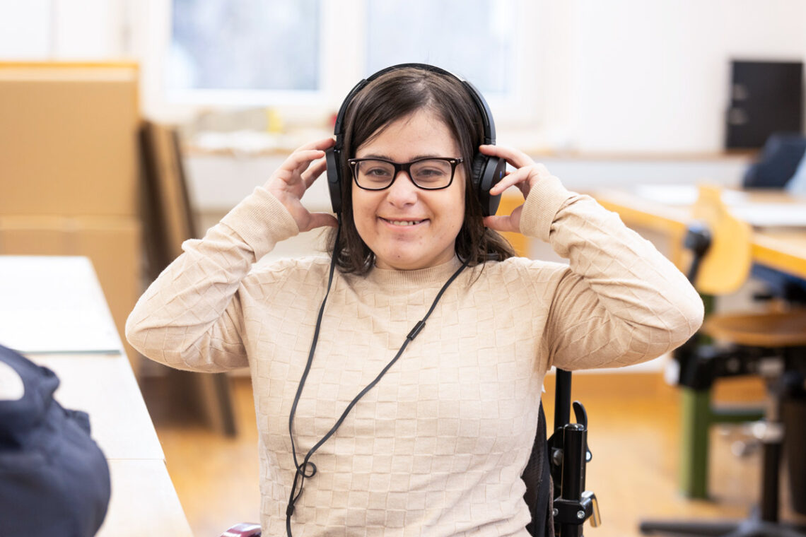 Am liebsten hört Amanda Bischof Musik. Die Partyschlager von DJ Ötzi und Andreas Gabalier haben es ihr angetan. So kommt es, dass diese Lieder in der Freizeit der 21-Jährigen eine entscheidende Rolle spielen – unterwegs oder daheim in ihrem Zimmer. Ganz anders als beim Mit­singen oder an einem Konzert, nämlich still und konzentriert, geht es an Amanda Bischofs Arbeitsstelle in der GHG Sonnenhalde Tandem in St.Gallen zu und her. Gemeinsam mit anderen Klientinnen und Klienten ist Amanda Bischof von Montag bis Freitag dort im Einsatz, jeweils von 9 bis kurz nach 16 Uhr.